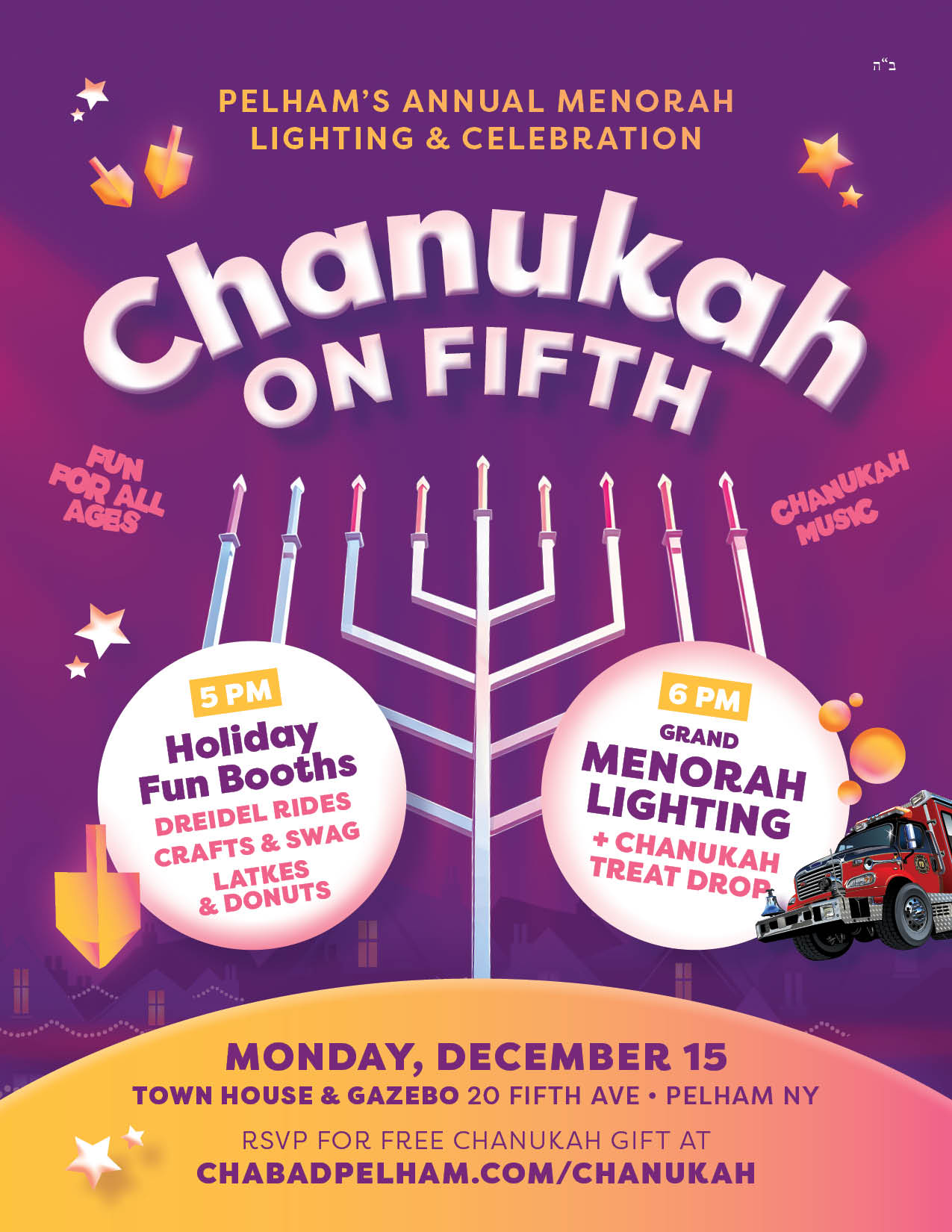 5:00pm: Holiday Fun Booths, Dreidel Rides & Crafts, latkes, donuts & giveaways!